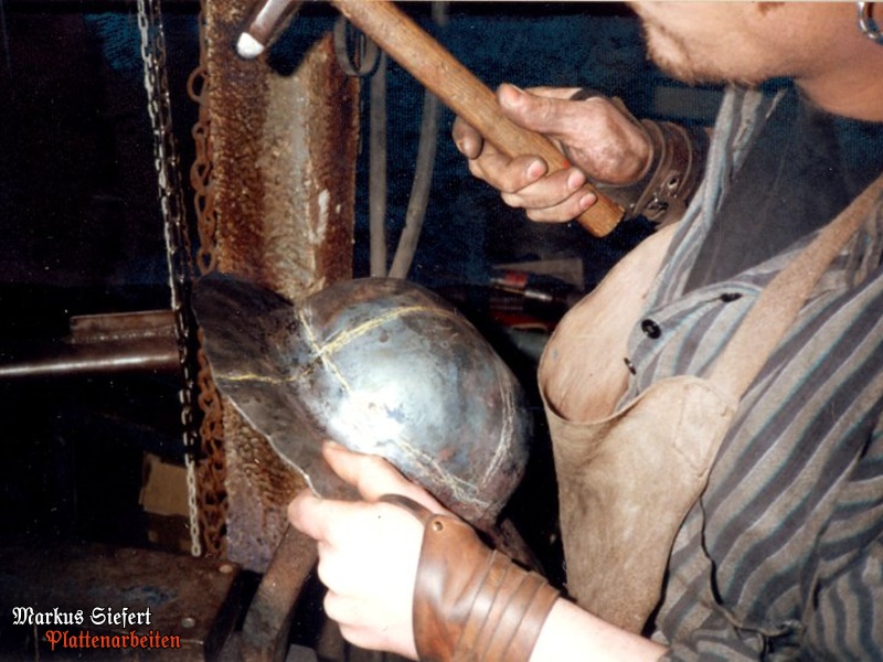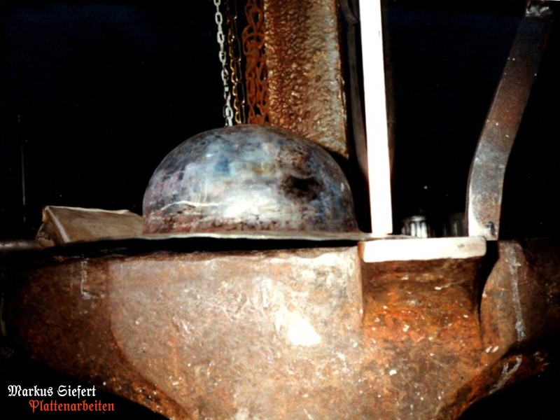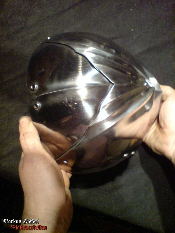 Der Helm wurde aus aus einem Stück 2,5mm starkem C45-Blech