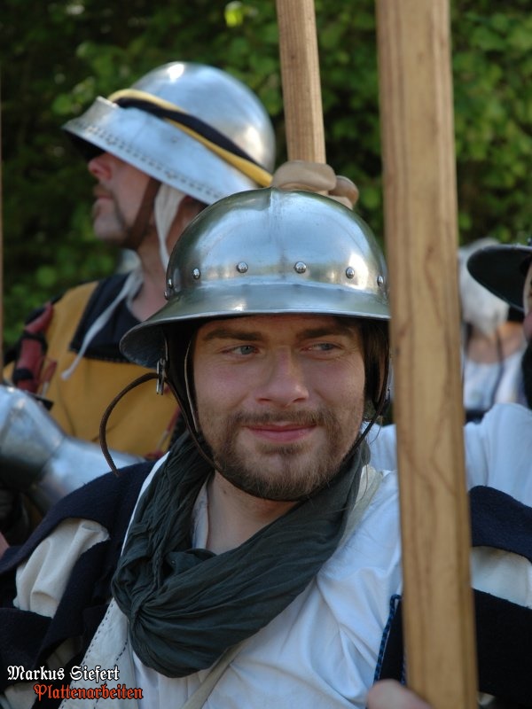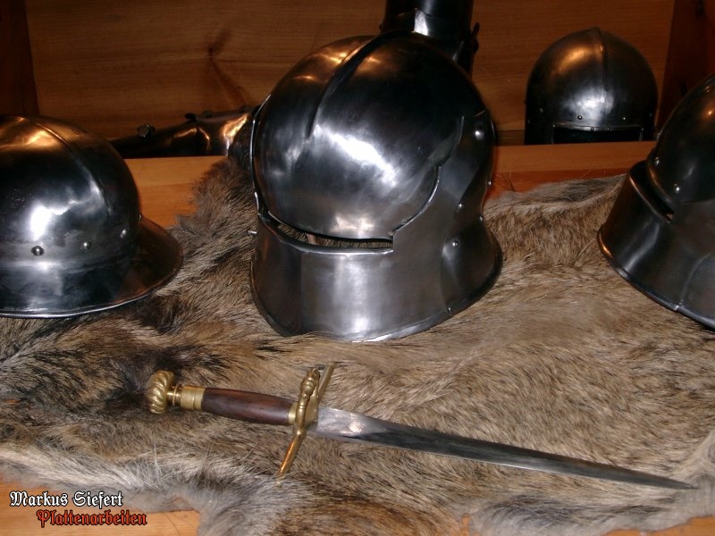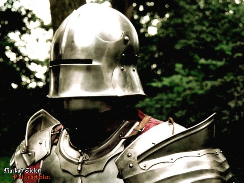 einer Gleitnietkonstruktion verbunden. Ebenfalls unüblich wäre die hier abgebildete Schaller zu diesem Harnisch.