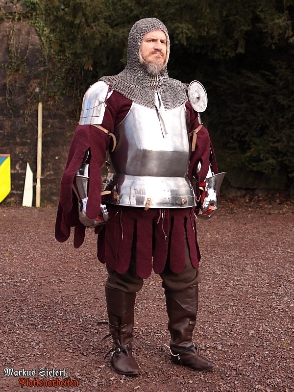 Mit abnehmbaren Verstärkungsstücken für Schulter und Ellbogen, in dieser Form nach 1460