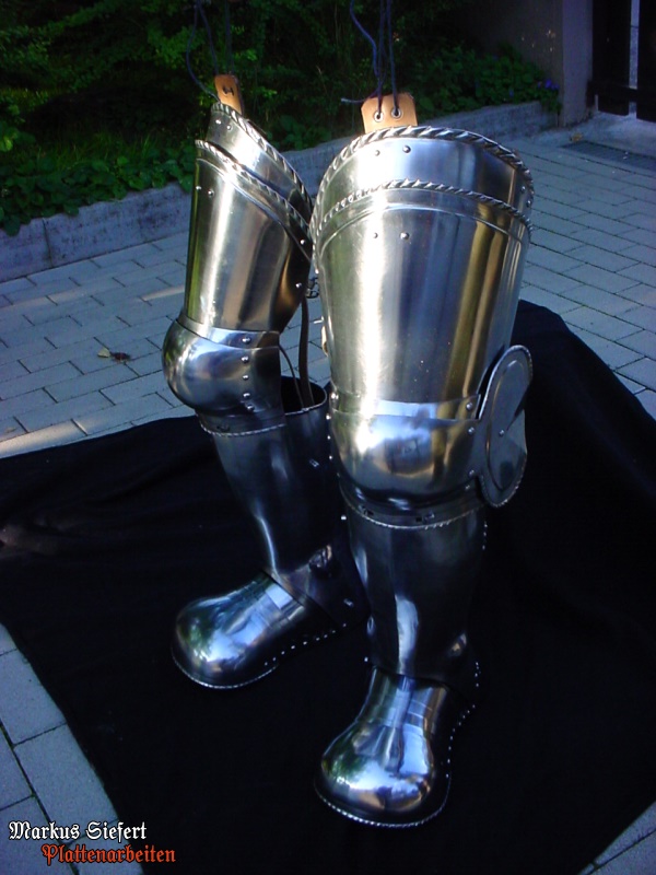 (z.B. ein Harnisch vom Plattner Hans Mayrstetter im Zeughaus in Graz) und mit Absatz und stark geschnürten Rollen verziert.