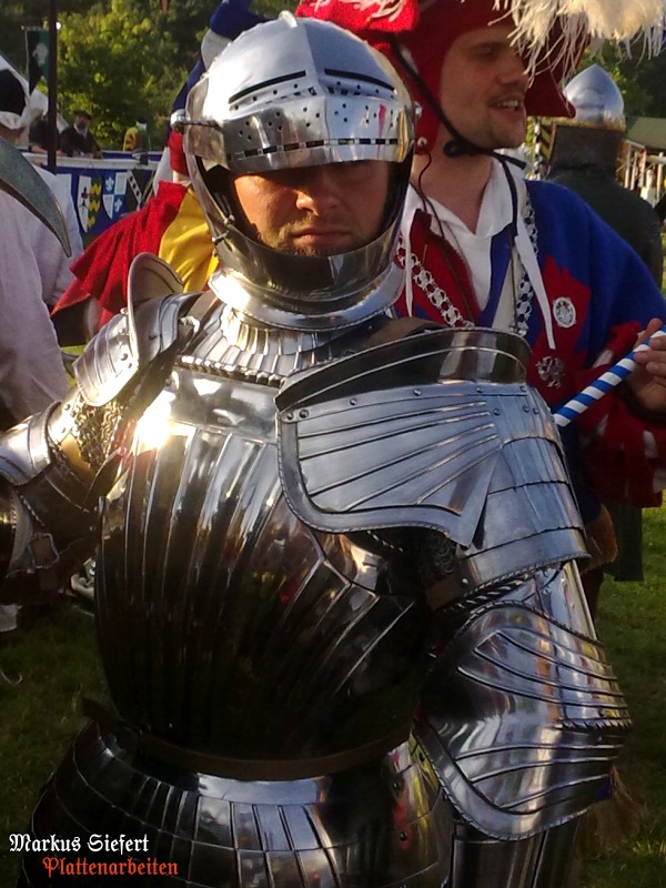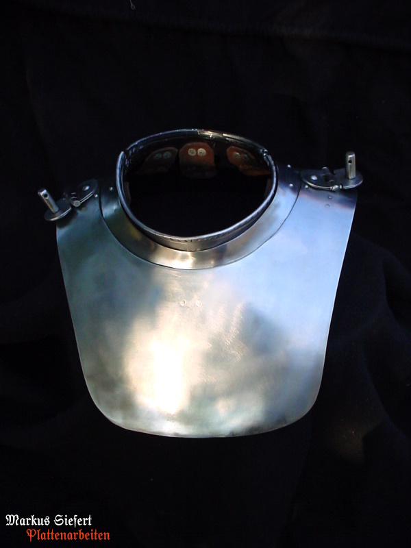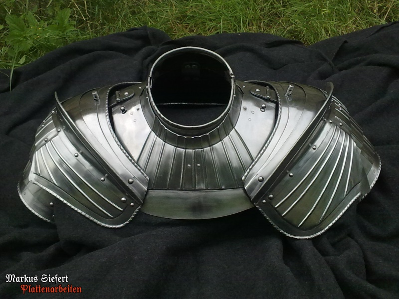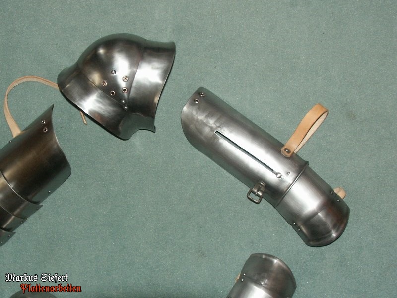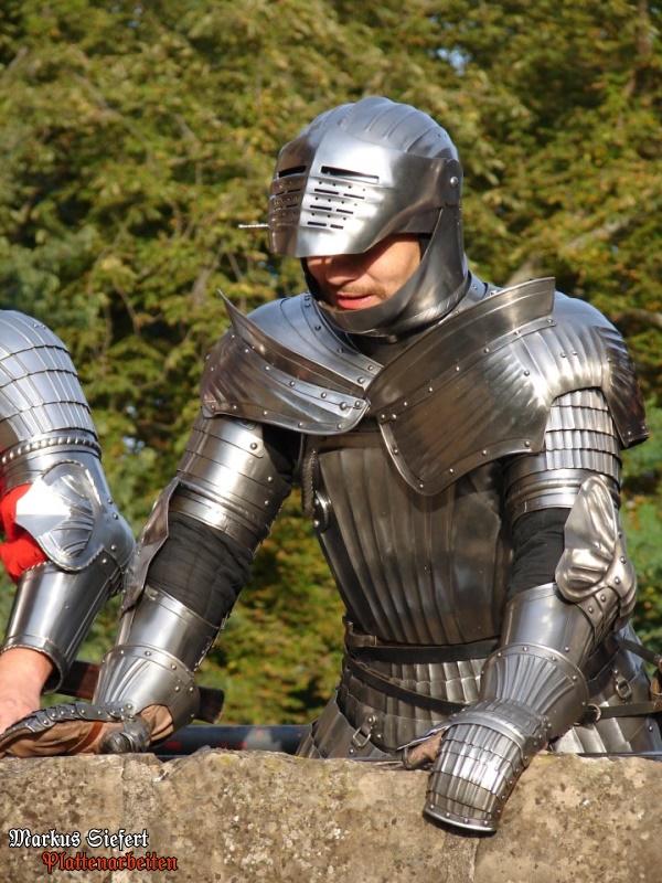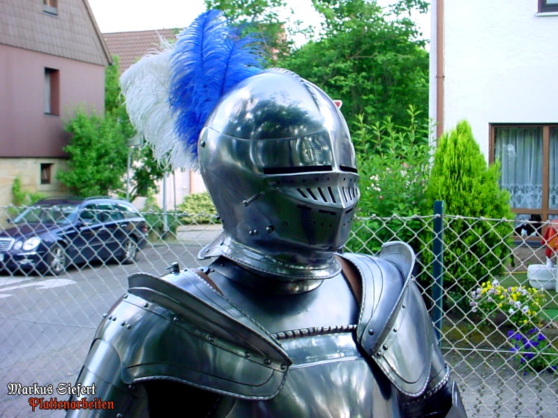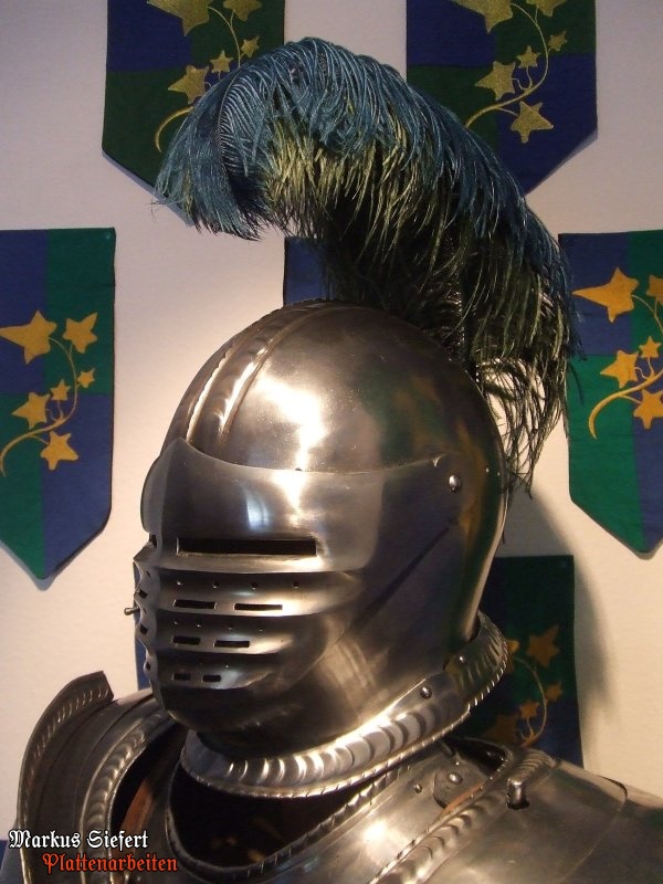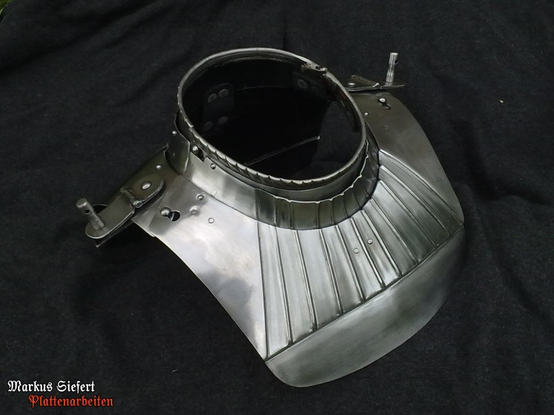 Der Visierhelm geht im Kragen um, eine gleichartige Konstruktion liegt beim Armzeug vor.