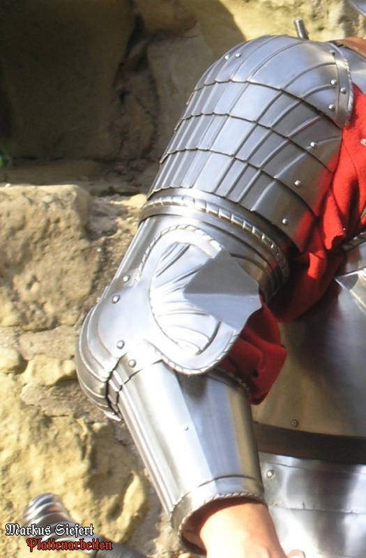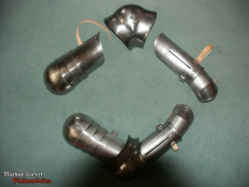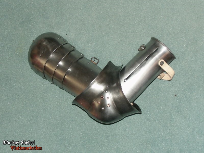 Sog. deutsches Amzeug mit großen Ellbogenkacheln (wie z.B. an einem Riefelharnisch im DHM Berlin), in Teilen gehärtet; abnehmbarer,