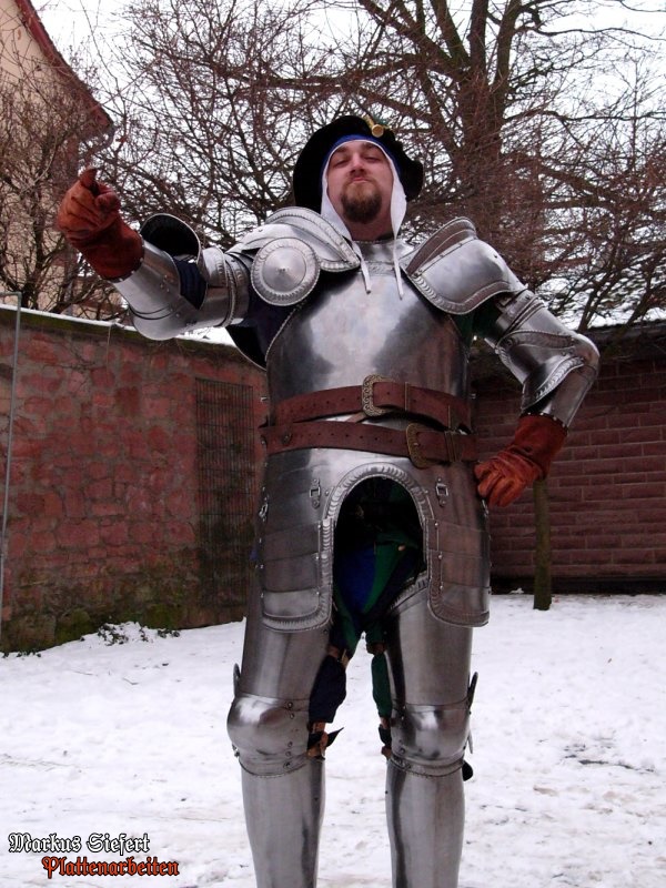 Ritterlicher Harnisch, inspiriert von Vorlagen um 1525 (Herstellung: November 2005)
